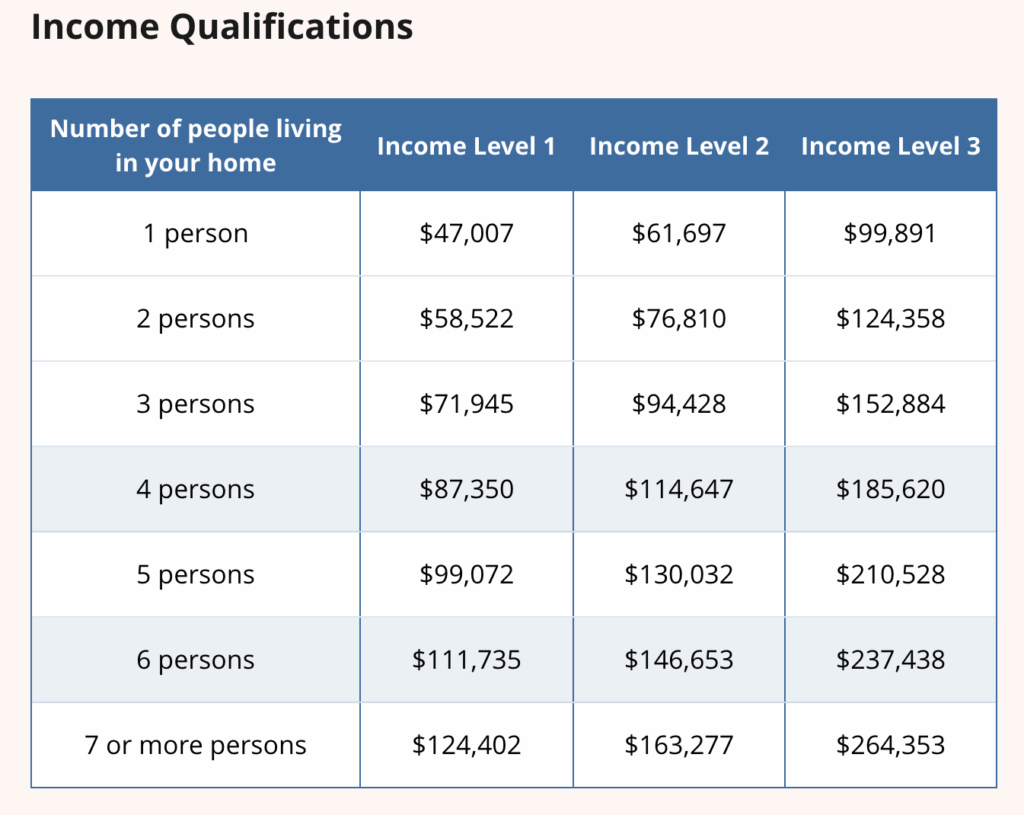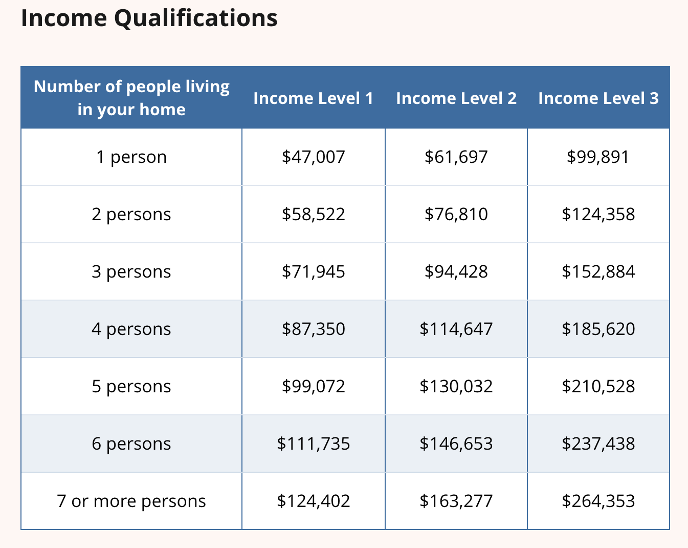 - If a household meets the income threshold of any of the levels in the table above, but the home is valued at or higher than the property value of $1,230,000, they will be approved as an income level 3 participant.